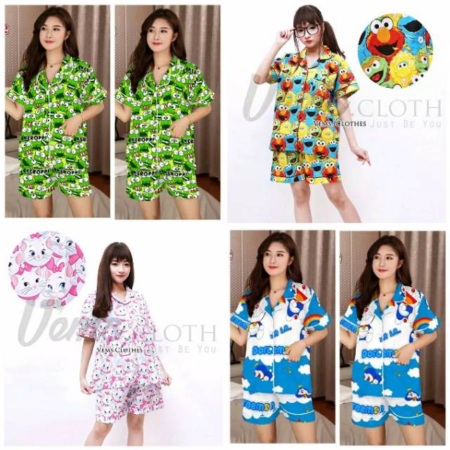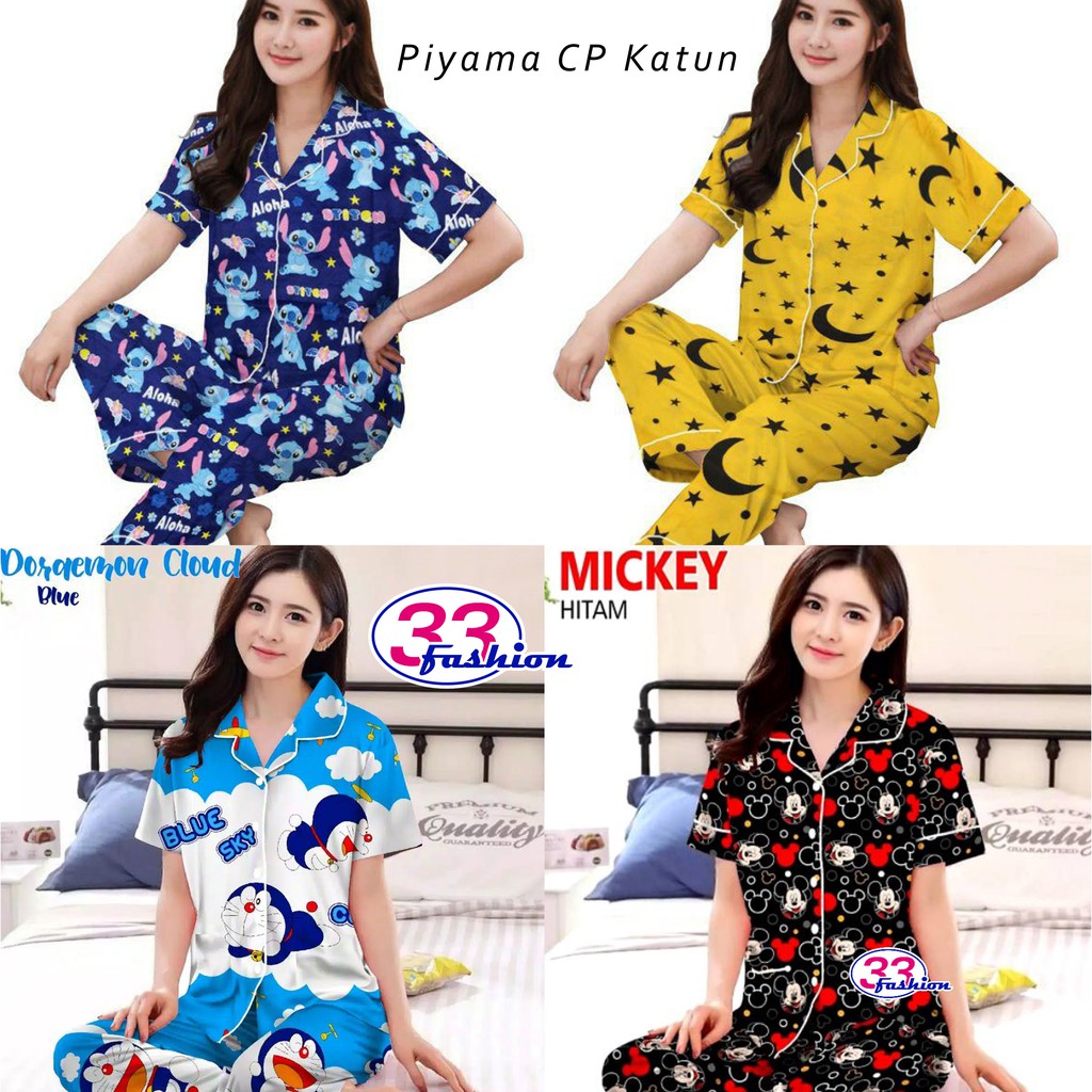 Piyama Cp Baju Tidur Wanita Dewasa Katun Karakter Doraemon Mickey Aloha Stitch Keroppi Star Moon Bee Shopee Indonesia