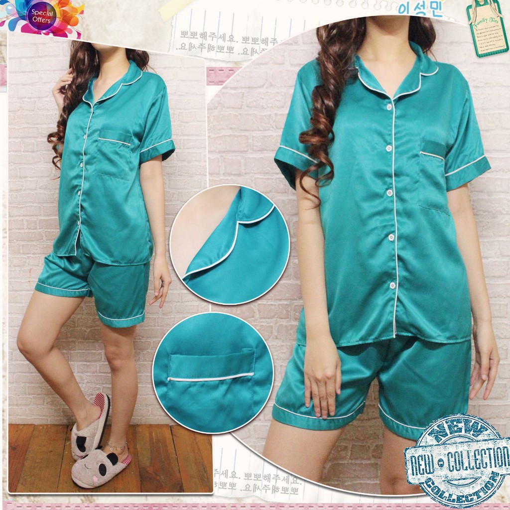 Pp Satin Piyama Polos Celana Pendek Baju Tidur Pajamas Wanita Dewasa Shopee Indonesia
